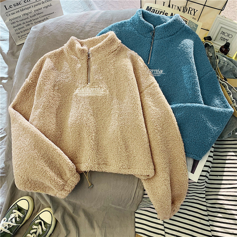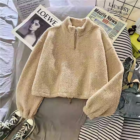 Cozy Plush HalfZip Fleece Cropped Sweatshirt for Women Sale