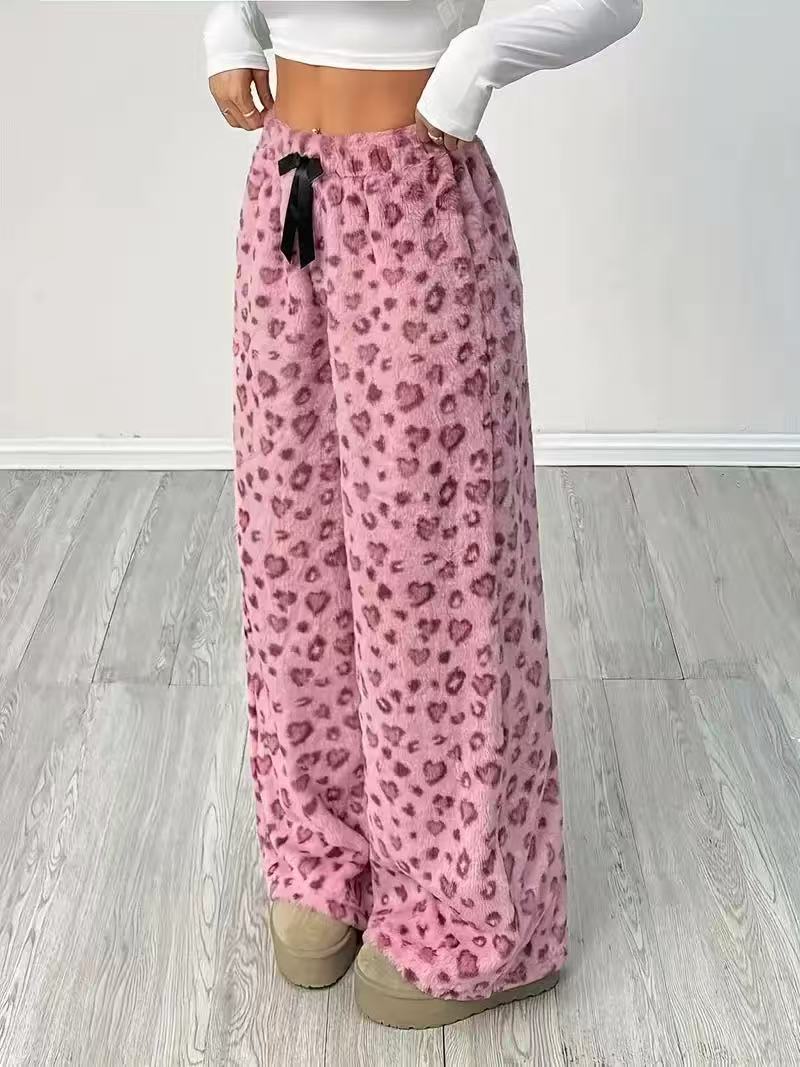 Leopard Print WideLeg Casual Pants EuropeanAmerican Style - White Heart / XL
