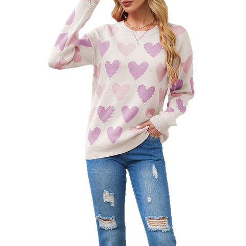 2025 AutumnWinter Beaded Heart Knit Sweater Sale