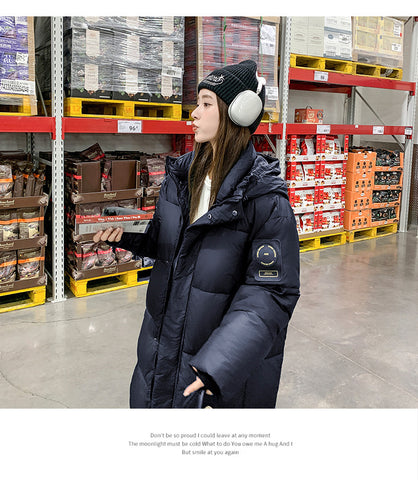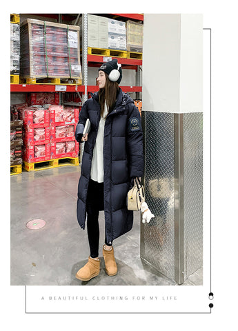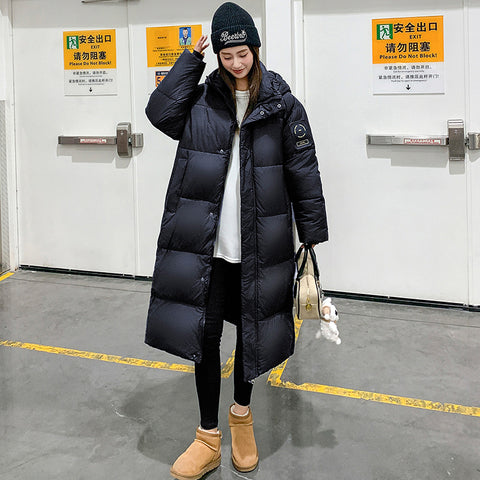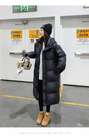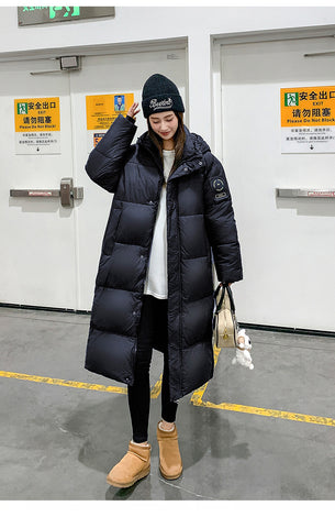 2025 New Black Gold Womens Oversized Long Down Coat - Classic Black / XL