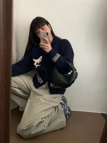 Okay, real talk. Your wardrobe is probably giving "meh" and you know it. You need that one piece that just slaps, that elevates everything you wear, and this knit cardigan is it. It's not just about staying warm, it's about serving looks, feeling confident, and low-key being the most stylish person in the room. This drip is the cheat code to effortless cool. You’re not gonna find another knit cardigan this fire that’s this comfy and this unique. It’s an investment in your vibe, period. Stop scrolling and start slaying.
